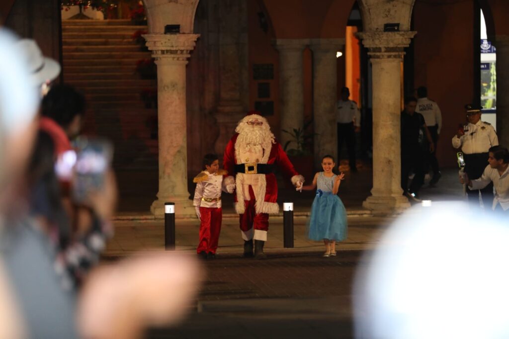 Desde el balcón del Palacio Municipal, la alcaldesa acompañó al Coro de la Ciudad, cuyos integrantes comenzaron su presentación entre el público, sorprendiendo con un emotivo repertorio de villancicos. Poco a poco, las y los asistentes se unieron en un conjunto de voces que resonó en el corazón de la capital yucateca, creando un ambiente de unión y alegría compartida.