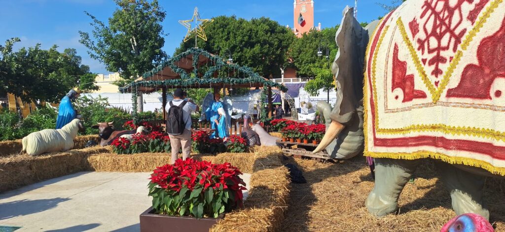 Al centro del espacio destaca un nacimiento instalado por el Ayuntamiento de Mérida, que atrae tanto a creyentes como a curiosos. Para muchos, este pesebre representa un símbolo del inicio de la temporada navideña y un espacio de reflexión.