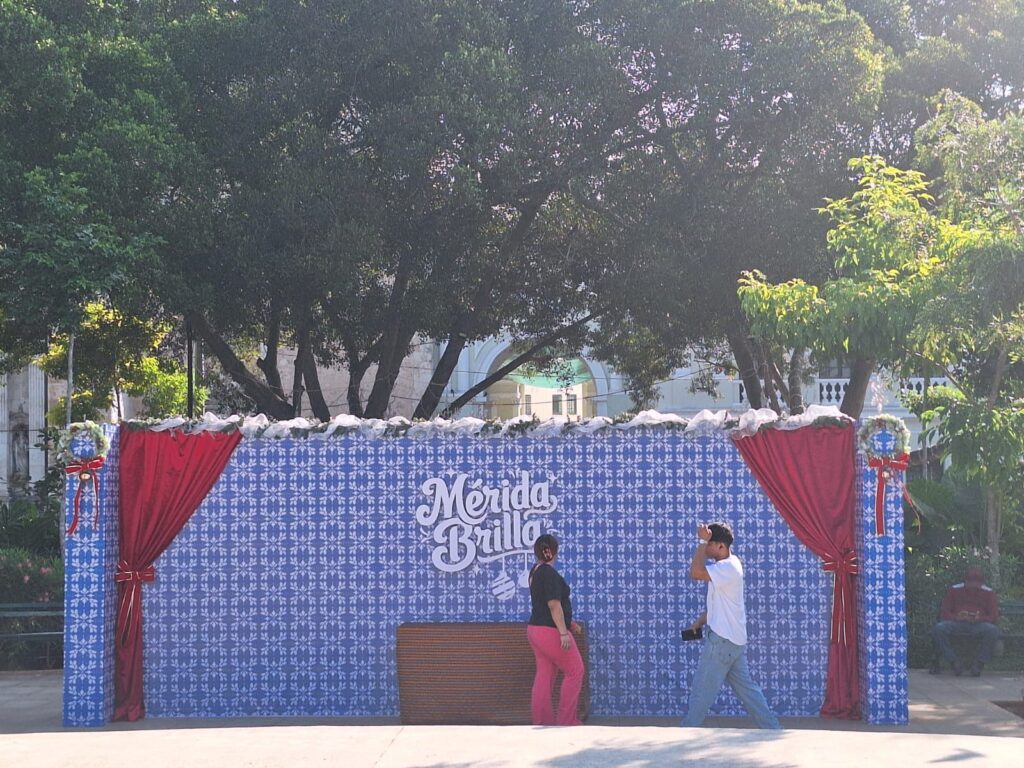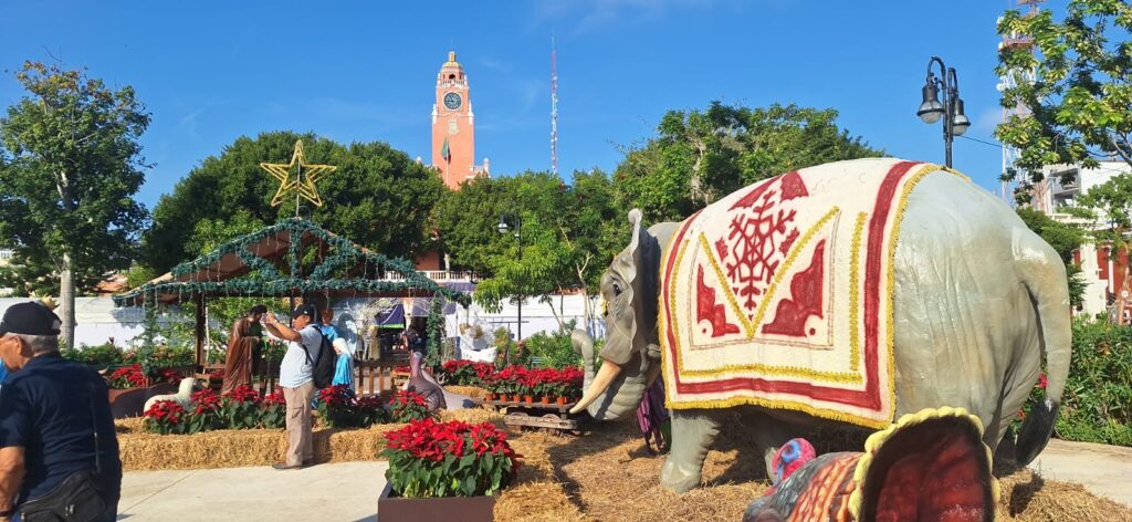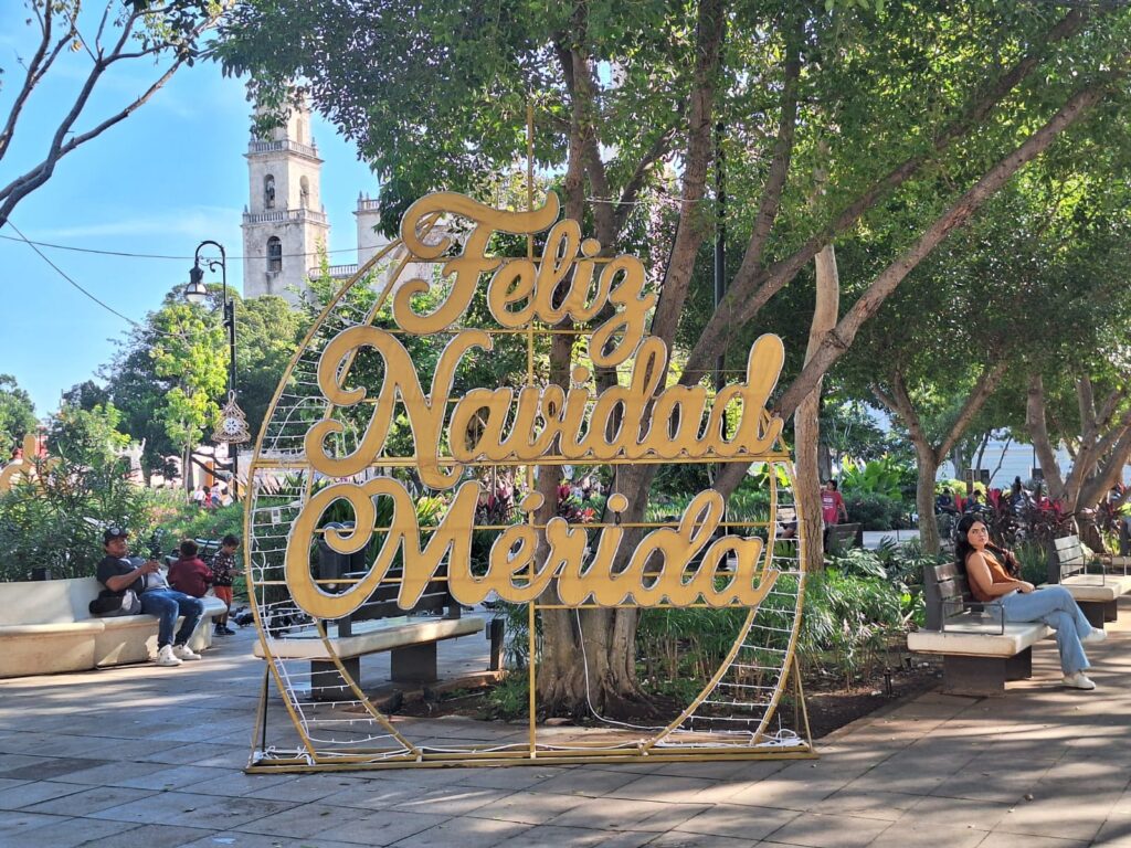 La Plaza Grande de Mérida luce nuevamente el brillo característico de las fiestas decembrinas, convirtiéndose en un punto de encuentro donde locales y visitantes disfrutan del ambiente festivo. A cualquier hora del día, el corazón del Centro Histórico se llena de vida con familias que se detienen a capturar fotografías entre figuras gigantes de regalos, piñatas, osos y estrellas.
