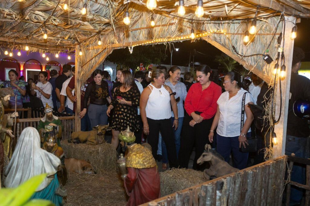 Uno de los atractivos que robó la atención fue el pesebre, que en esta edición incorporó animales reales como chivos, cabras y un burro. Este espacio interactivo permitió que niñas y niños convivieran con ellos y se tomaran fotografías, convirtiéndose rápidamente en uno de los puntos favoritos de la noche.