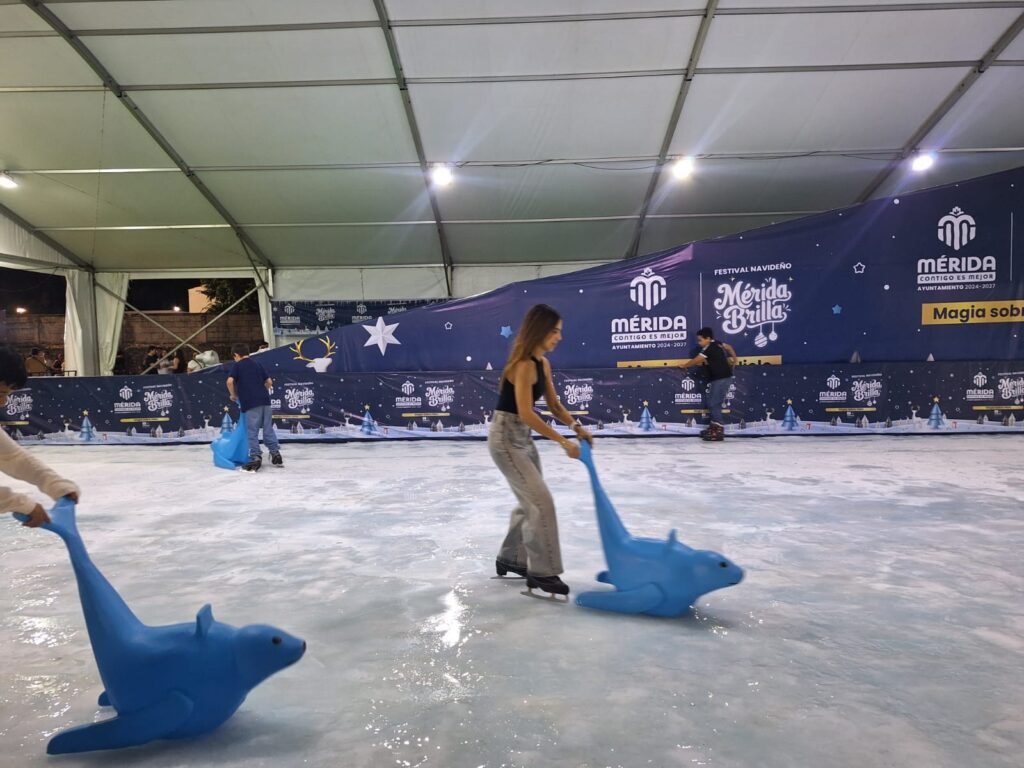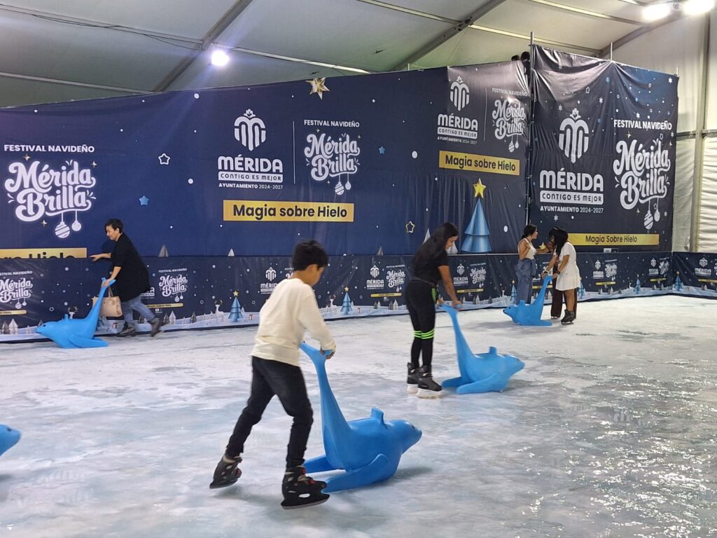 La capital yucateca se sumergió de lleno en el espíritu de la temporada con la inauguración de la Pista de Hielo del Ayuntamiento, un evento que marca el inicio del Festival “Mérida Brilla”.