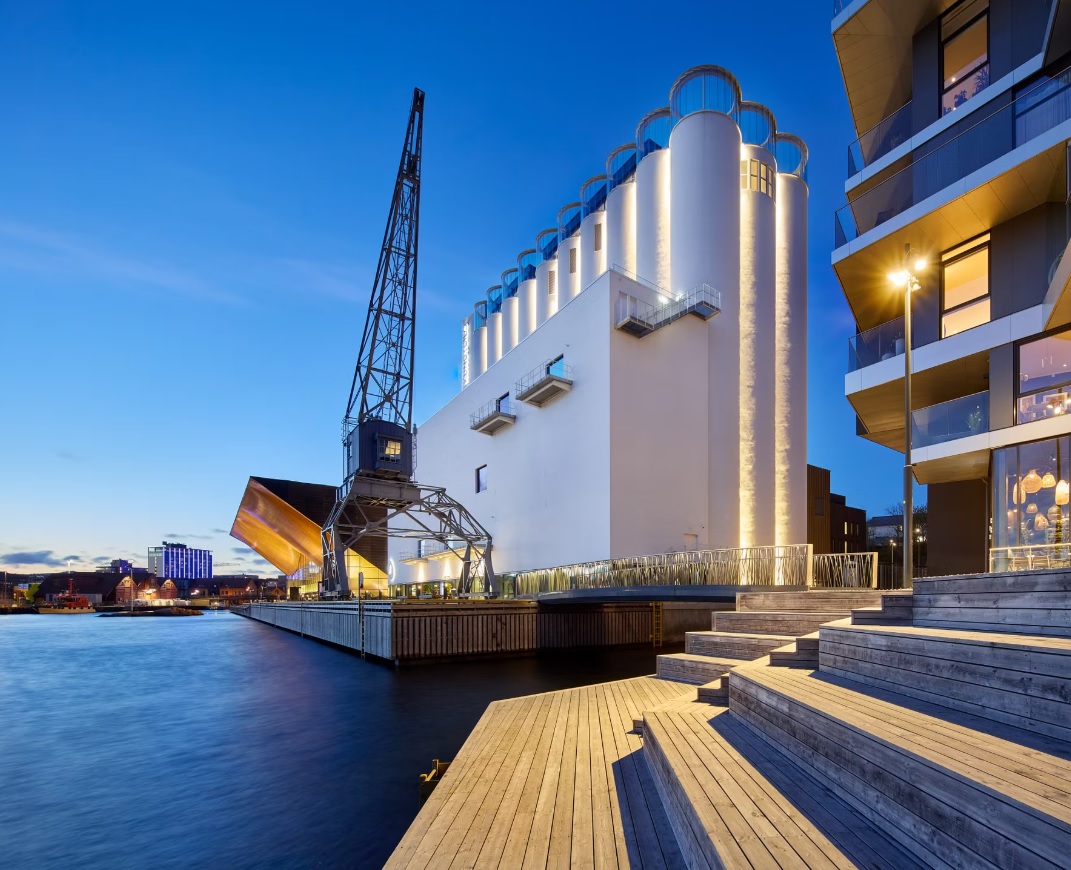 Kunstsilo ocupa un antiguo silo de grano que se transformó en uno de los centros de arte y cultura más innovadores del norte de Europa, conservando la memoria industrial del edificio y adaptándolo a usos museísticos contemporáneos. El recinto abrió sus puertas en mayo de 2024 y alberga la Colección Tangen, considerada la mayor colección de modernismo nórdico del mundo, además de otras colecciones permanentes que consolidan al museo como referencia para el arte de la región.