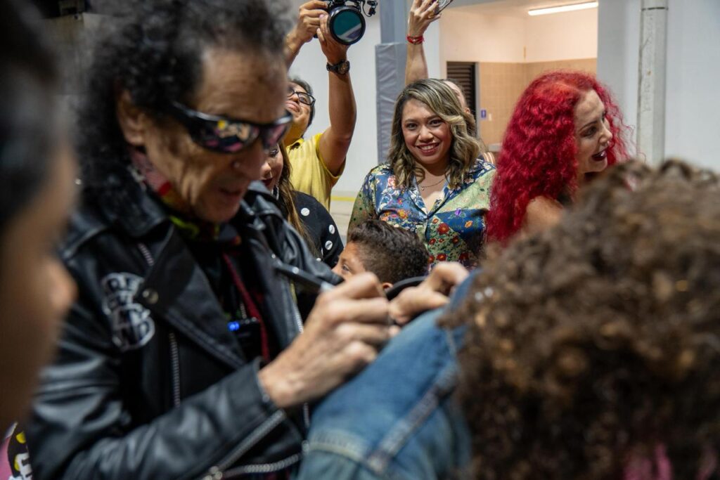 Durante la estancia del artista, las niñas, niños y adolescentes ofrecieron una muestra musical preparada por ellos mismos, utilizando instrumentos caseros y guitarras fabricadas a mano. Estas actividades forman parte de los programas creativos que desarrollan en el centro. El intérprete de El Tri presenció con evidente entusiasmo la presentación, reconociendo el talento y la creatividad de los participantes, quienes vivieron un momento significativo de expresión personal.