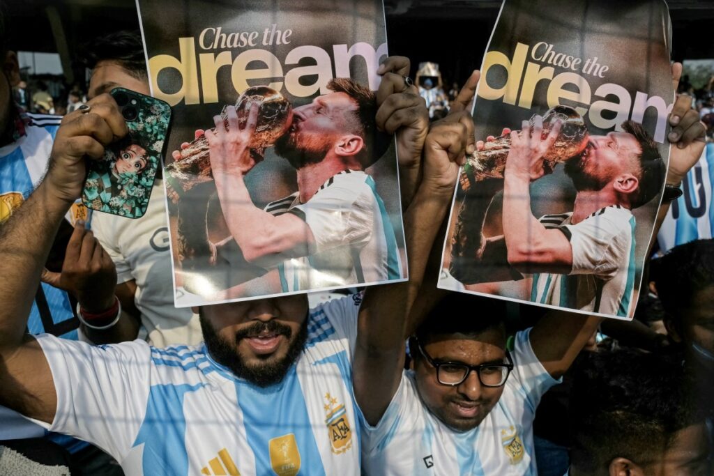 El jugador de 38 años, quien permanece de viaje en el gigante asiático hasta el lunes, recibió una bienvenida multitudinaria a su llegada al estadio de Bengala Occidental por fanáticos exultantes que coreaban su nombre y portaban la camiseta de la selección argentina.