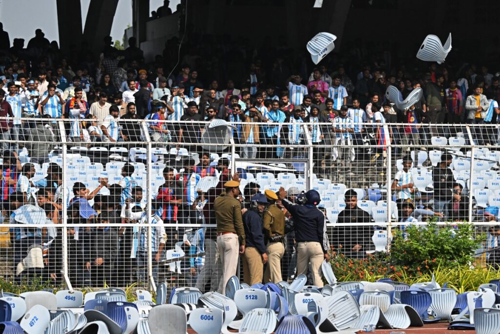 🚨 La visita de Lionel Messi a India concluyó con disturbios en el estadio Salt Lake. La policía detuvo al jefe de la organización tras las denuncias de estafa por la brevedad del evento.