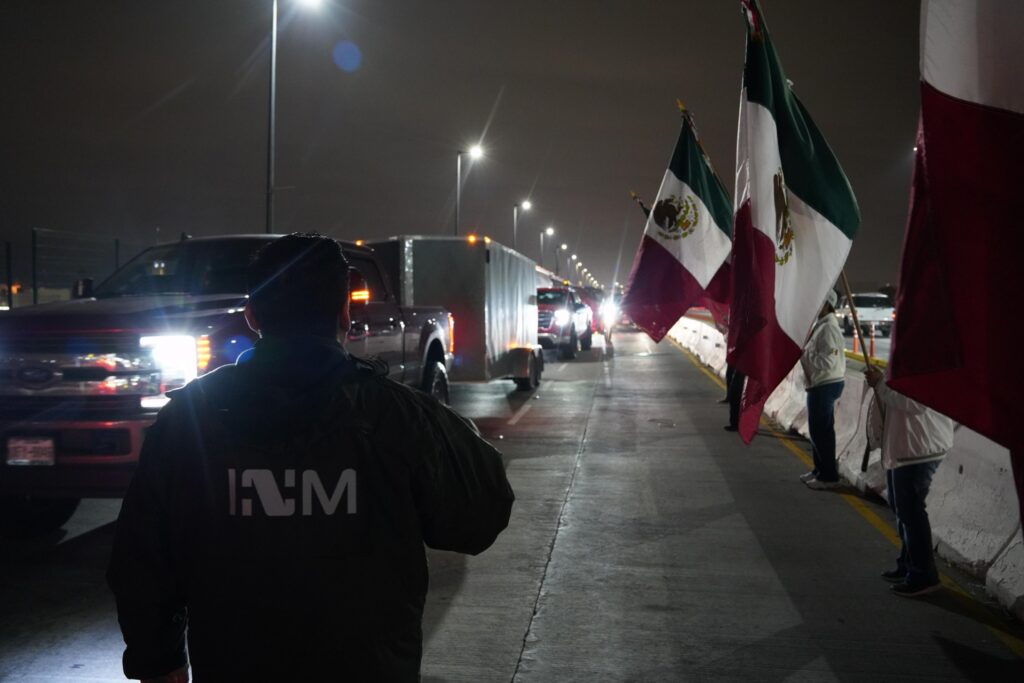 Por su parte el INM, a través de su Oficina de Representación en Nuevo Laredo, se sumó a las acciones encabezadas por Migrantes Unidos en Caravana A.C., con el objetivo de brindar acompañamiento, orientación y asistencia a paisanas y paisanos residentes en Estados Unidos que regresan a México para celebrar las fiestas decembrinas con sus familias.