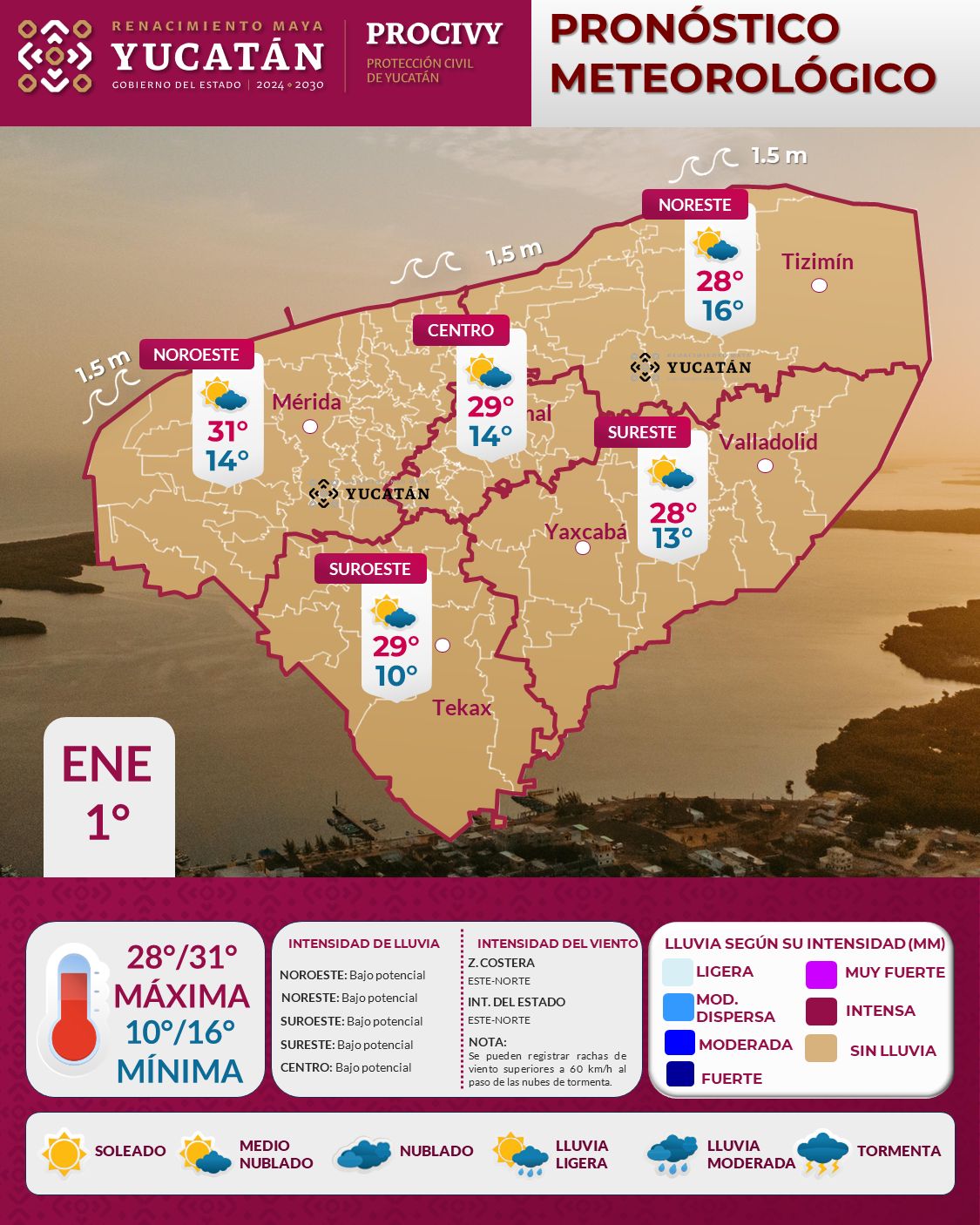 Pronóstico Yucatán: cálido de día y frío por la noche