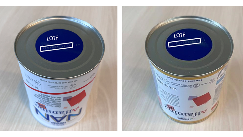 Foto: Nestlé.Imagen que muestra dónde se puede verificar el número de lote.