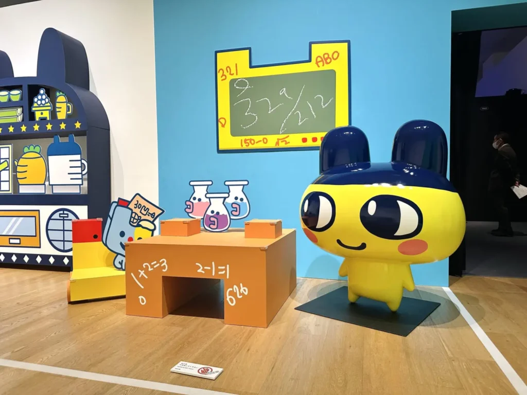 La exhibición muestra el paso del personaje pixelado en blanco y negro a los modelos actuales con pantallas a color y conexión wifi, reflejando la adaptación del producto a nuevas tecnologías sin perder su esencia.