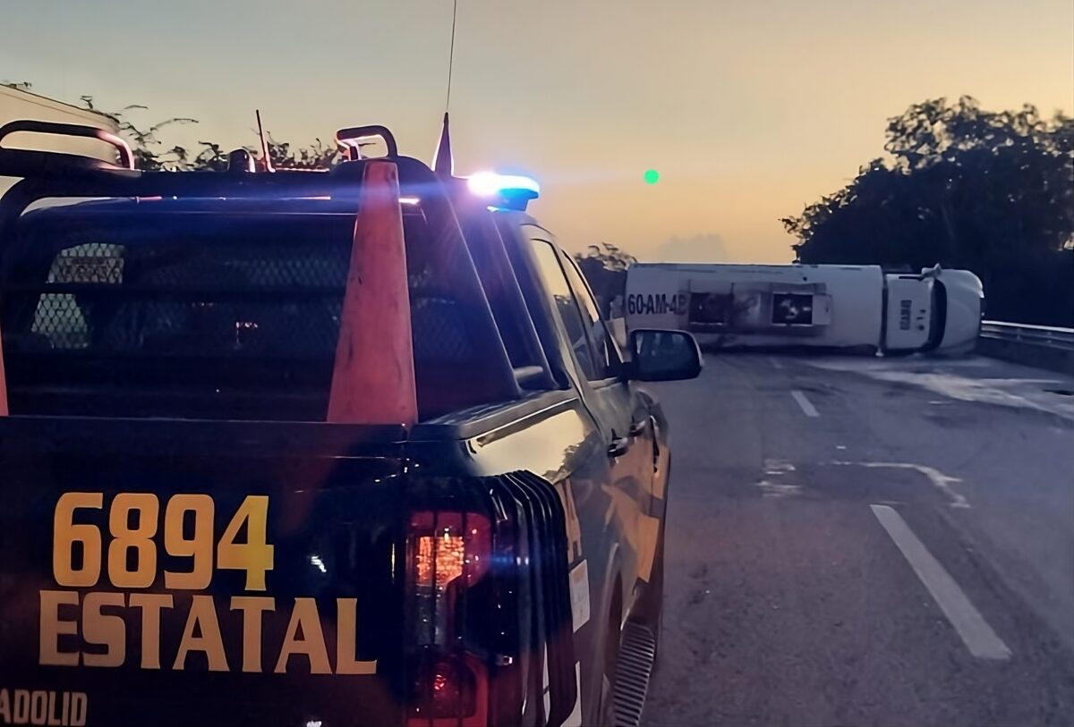 Una pipa cargada con más de 10 mil litros de combustible volcó durante la madrugada de este martes en la carretera federal Valladolid-Cancún, a la altura del kilómetro 180, lo que provocó el cierre parcial de la vía y el desvío del tránsito vehicular.