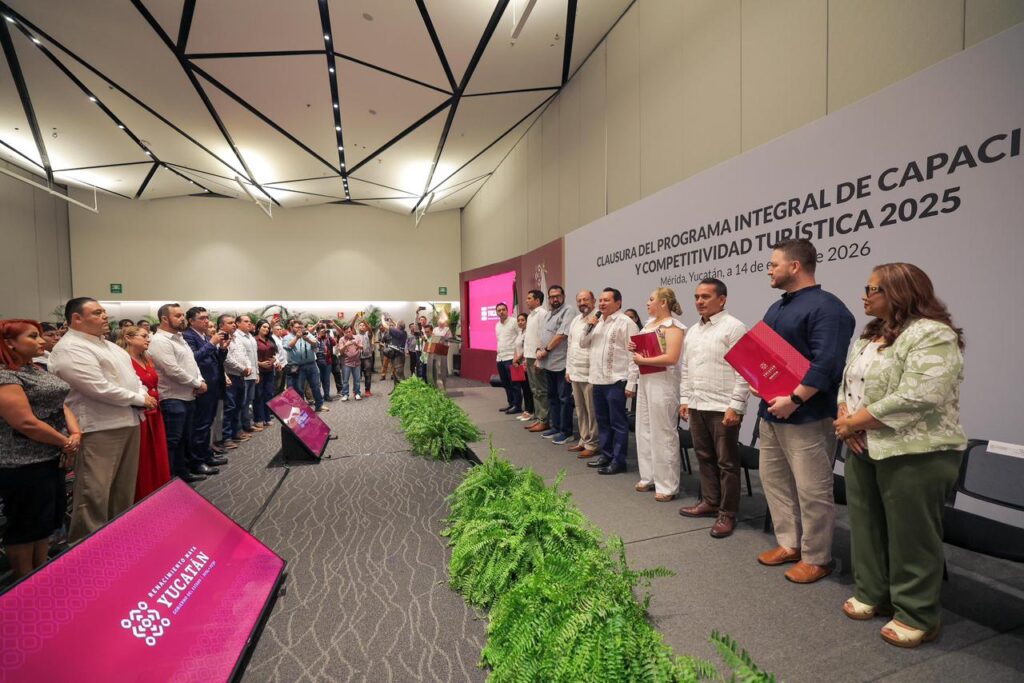 El gobernador Joaquín Díaz Mena encabezó la ceremonia de clausura y entrega de reconocimientos del Programa Integral de Capacitación y Competitividad Turística (Picct) 2025, en el que participaron más de dos mil prestadoras y prestadores de servicios turísticos, con el objetivo de fortalecer la competitividad turística en Yucatán.