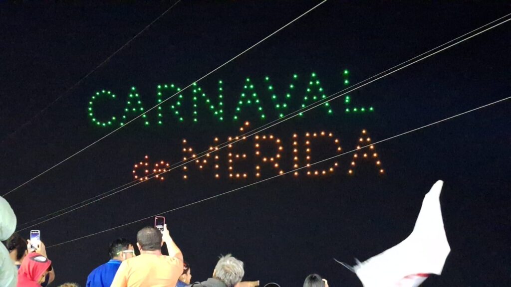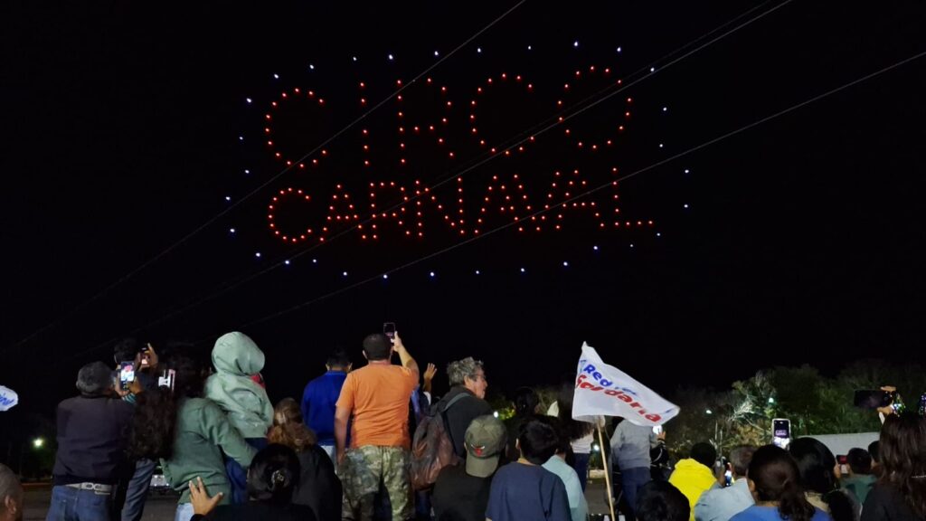 Los dispositivos electrónicos realizaron maniobras precisas para dibujar siluetas circenses y proyectar las frases "carnaval de Mérida" y "circo carnaval". Tras concluir la exhibición aérea, la mandataria municipal declaró formalmente el inicio de las festividades del Circo Carnaval Mérida 2026.