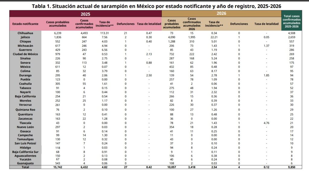 El secretario de Salud federal, David Kershenobich, señaló que el sarampión tiene una tasa de transmisión muy alta, por lo que la población sin inmunidad se encuentra en situación de riesgo elevado.