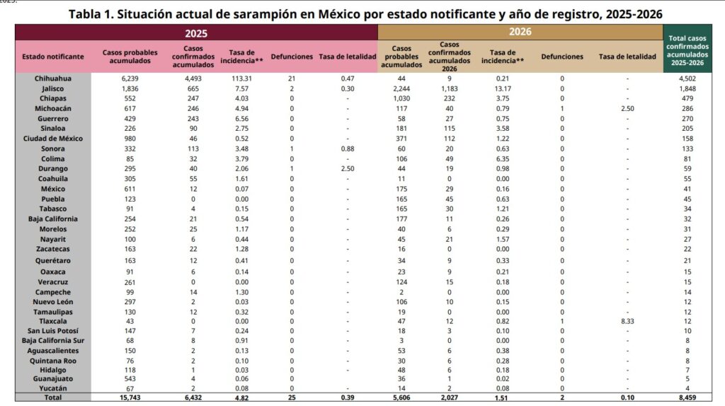 Desde 2025 e inicios del 2026, la entidad se mantiene en vigilancia epidemiológica, mientras que actualmente el resto de México se encuentra en alerta preventiva ante el incremento de casos.