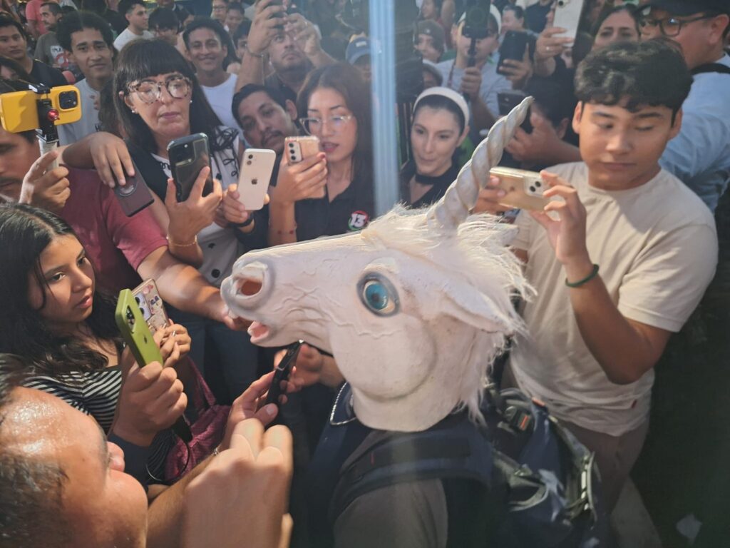 Aunque en plataformas digitales se anticipaba la posible asistencia de varios participantes, únicamente una persona acudió caracterizada con un disfraz de unicornio, llamando la atención de transeúntes y curiosos que se acercaron al punto para observar qué ocurría.