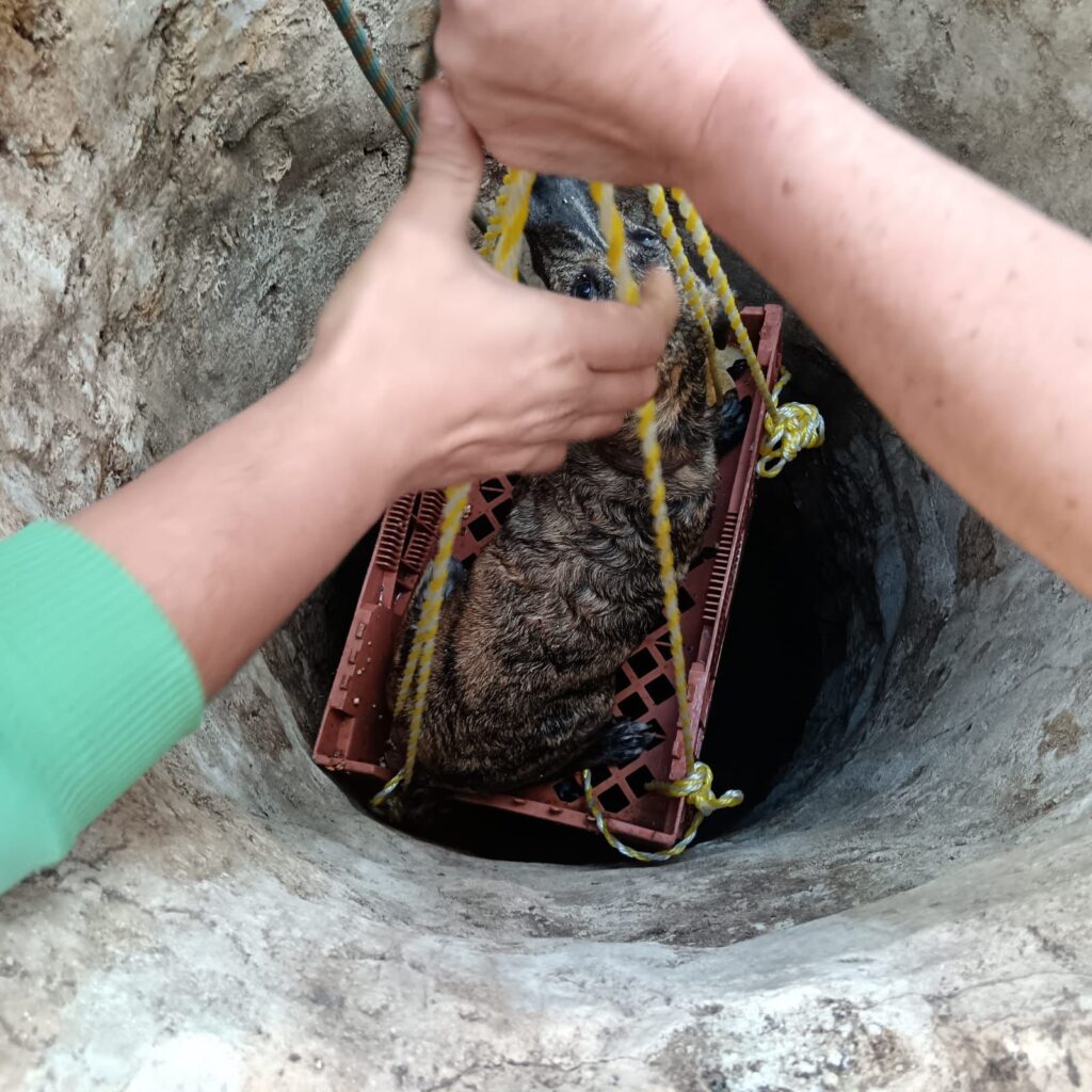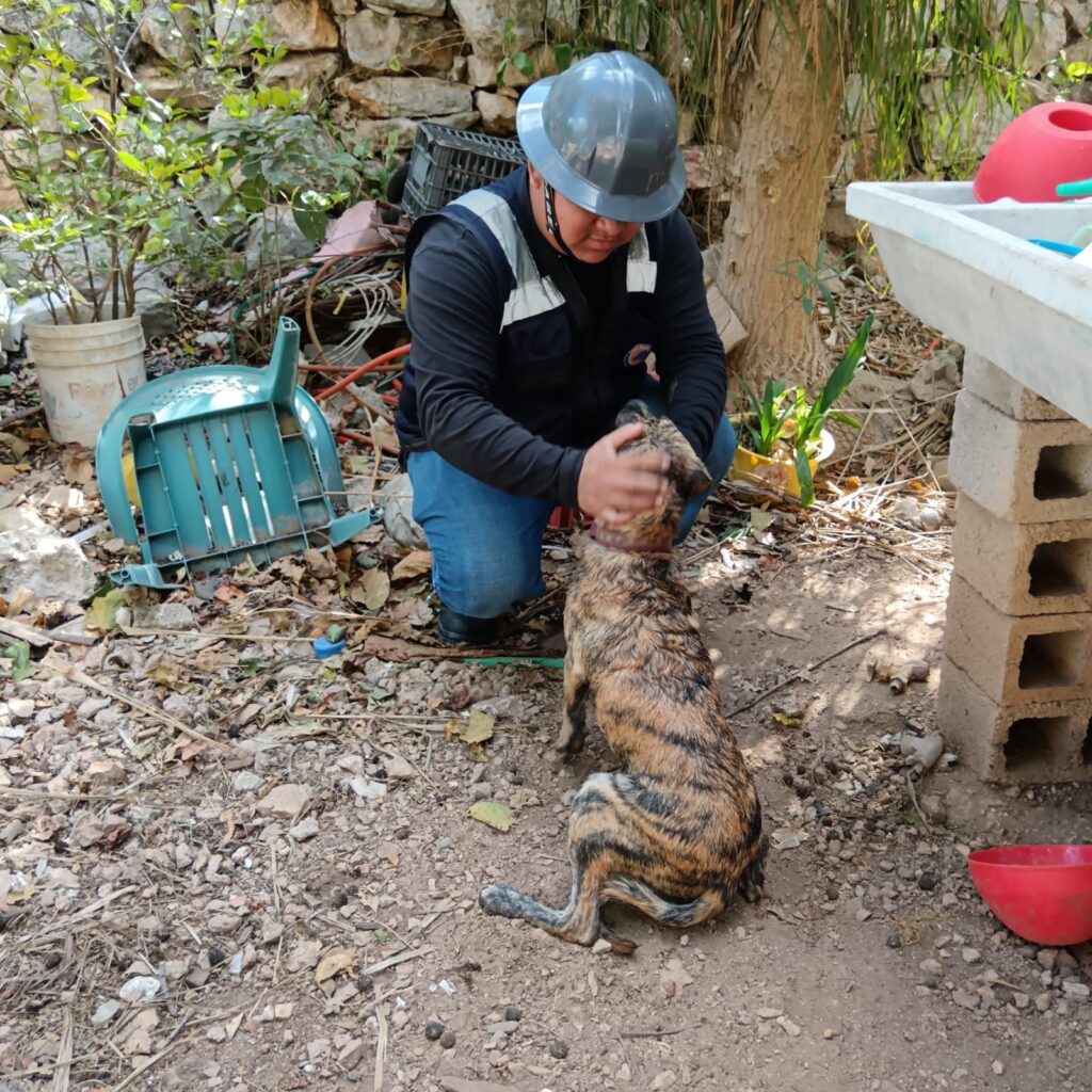 Elementos de la Jefatura de Protección Civil de Umán lograron rescatar con vida a un perrito que cayó a un pozo de aproximadamente 10 metros de profundidad.