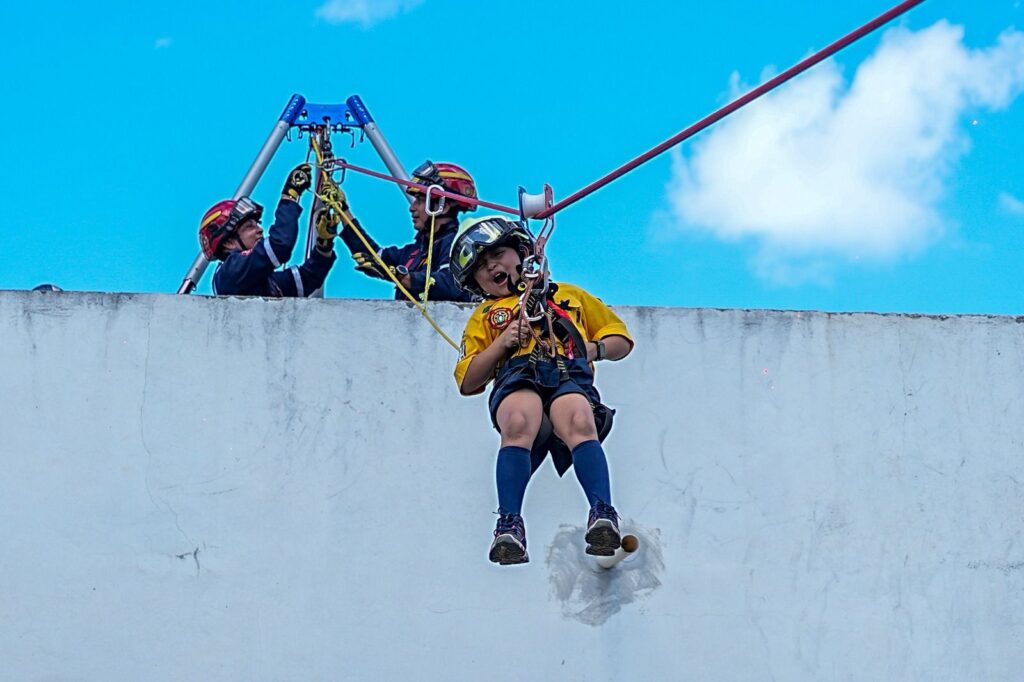 Durante la jornada, los niños que conforman la manada de lobatos y lobeznas vivieron la experiencia Comandante de Bomberos por un día. Este evento anual permite que los menores interactúen directamente con los cuerpos de emergencia y rescate de Yucatán. Por consiguiente, los elementos de la Subsecretaría de Siniestros y Rescate prepararon un recibimiento institucional para los visitantes.