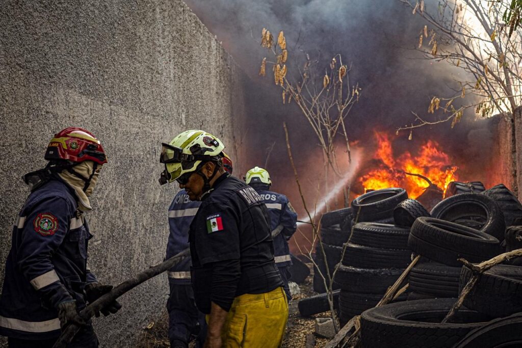 SSP Yucatán | El personal de la Secretaría de Seguridad Pública (SSP) controla el incendio de maleza y basura registrado en el periférico de Mérida.