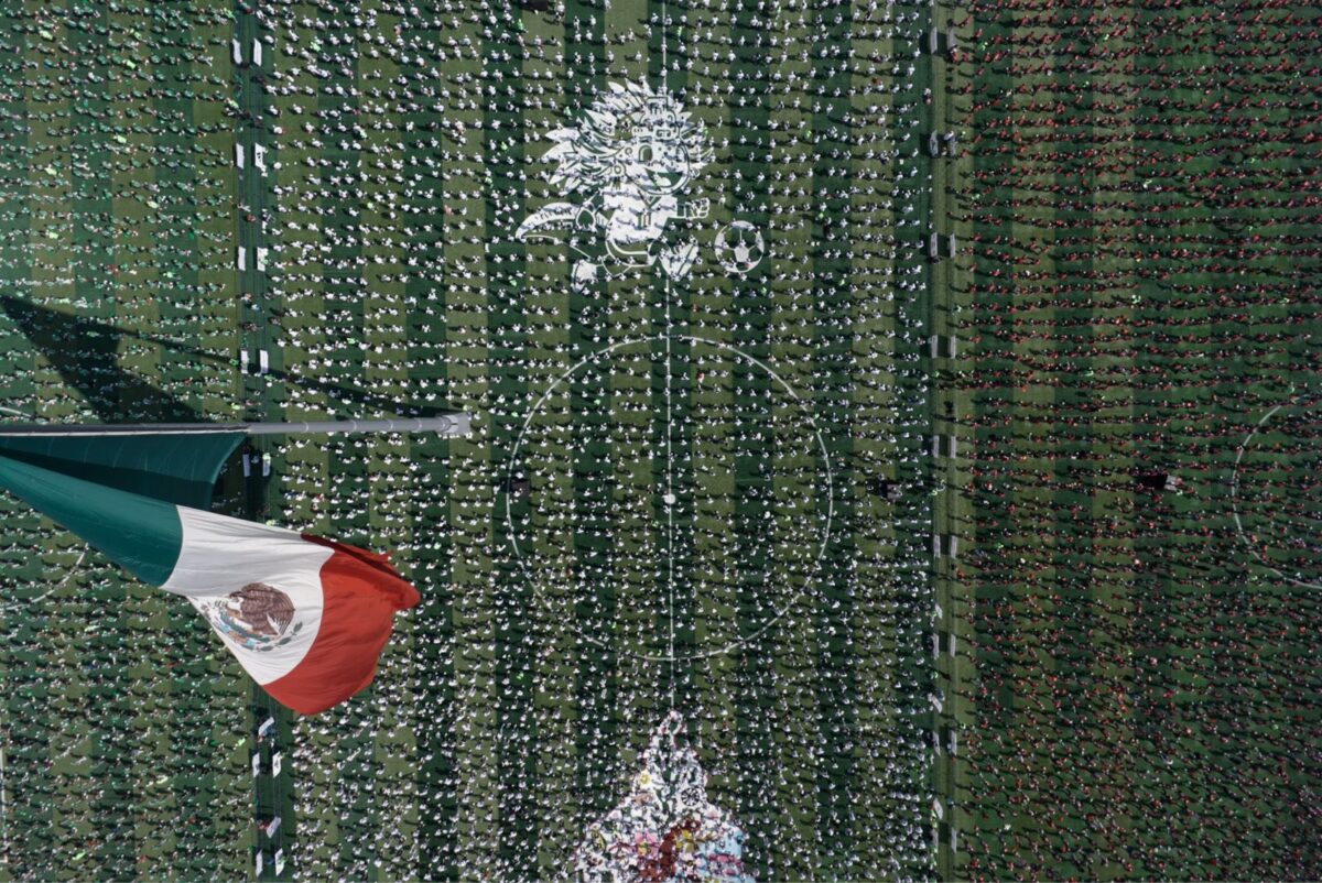 Formaron una gigantesca bandera mexicana mientras realizaban ejercicios con el balón.
