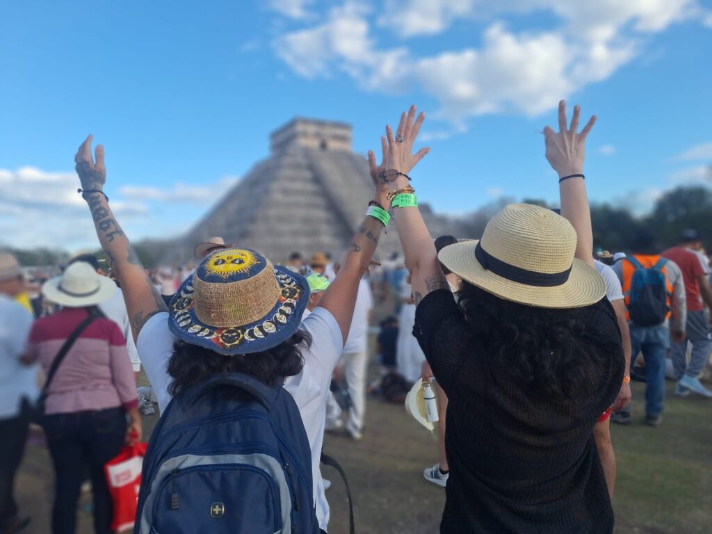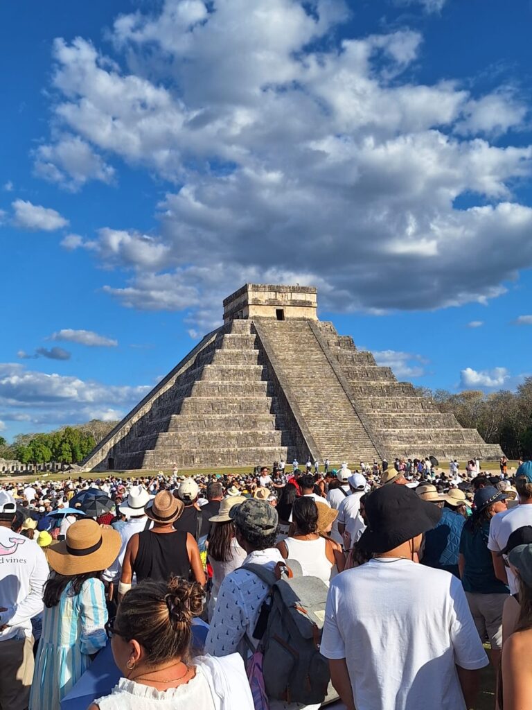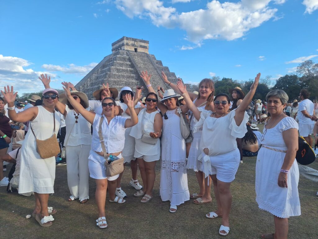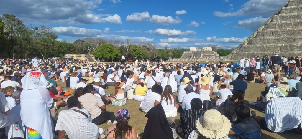Un total de 9 mil personas, vestidas mayoritariamente de blanco, inundaron los alrededores del templo de El Castillo. Esta multitud fue testigo de una cita milenaria que enfrentó la incertidumbre debido a las condiciones climáticas. Sin embargo, el fenómeno arqueoastronómico se manifestó con éxito para el deleite de los presentes.