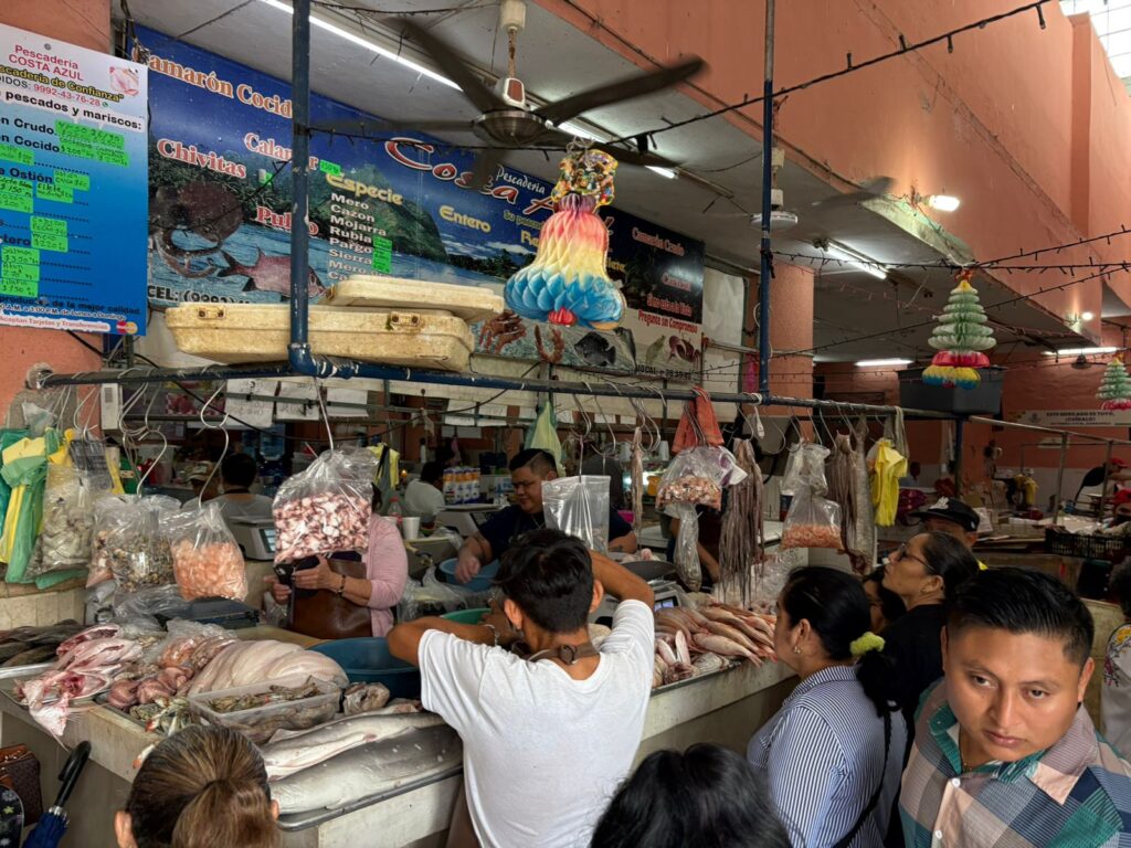 Para Josué Acosta Caamal, propietario de la pescadería Costa Azul y con 35 años de experiencia, la jornada actual representa apenas el “calentamiento” previo a los días más intensos.