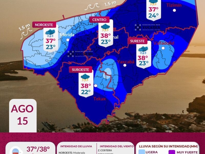 Publicado enYucatánPronóstico Yucatán: calor y lluvias por 24 Horas Yucatán agosto 15, 2025agosto 15, 2025