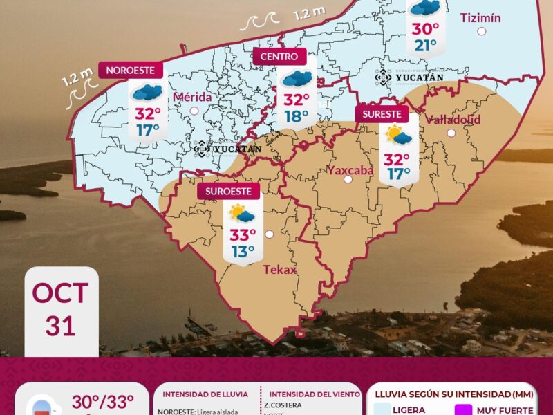 Publicado enYucatánPronóstico Yucatán: cielo nublado y descenso de temperatura por 24 Horas Yucatán octubre 31, 2025octubre 31, 2025