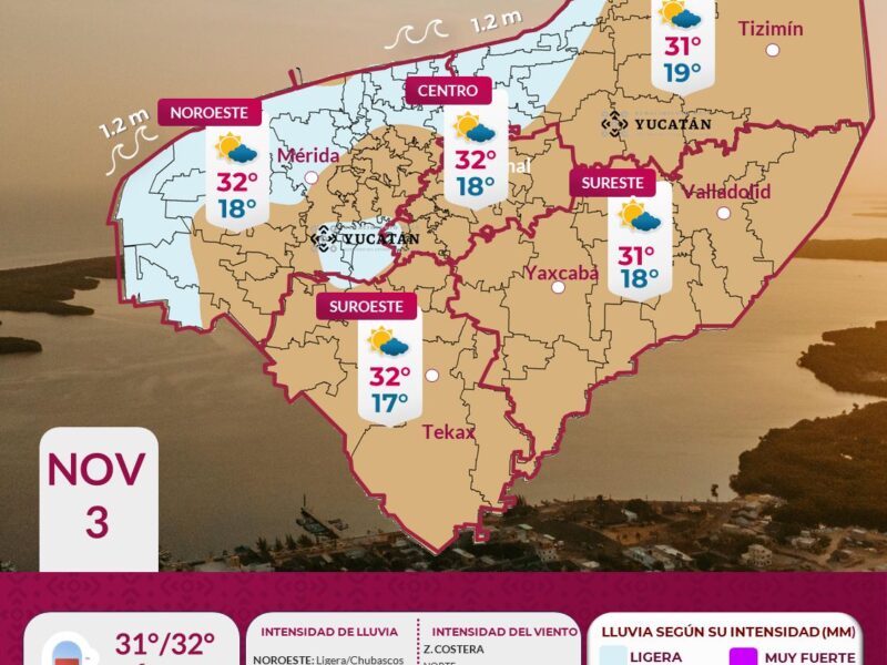 Publicado enYucatánPronóstico Yucatán: continuarán algunos efectos del frente frío por 24 Horas Yucatán noviembre 3, 2025noviembre 3, 2025