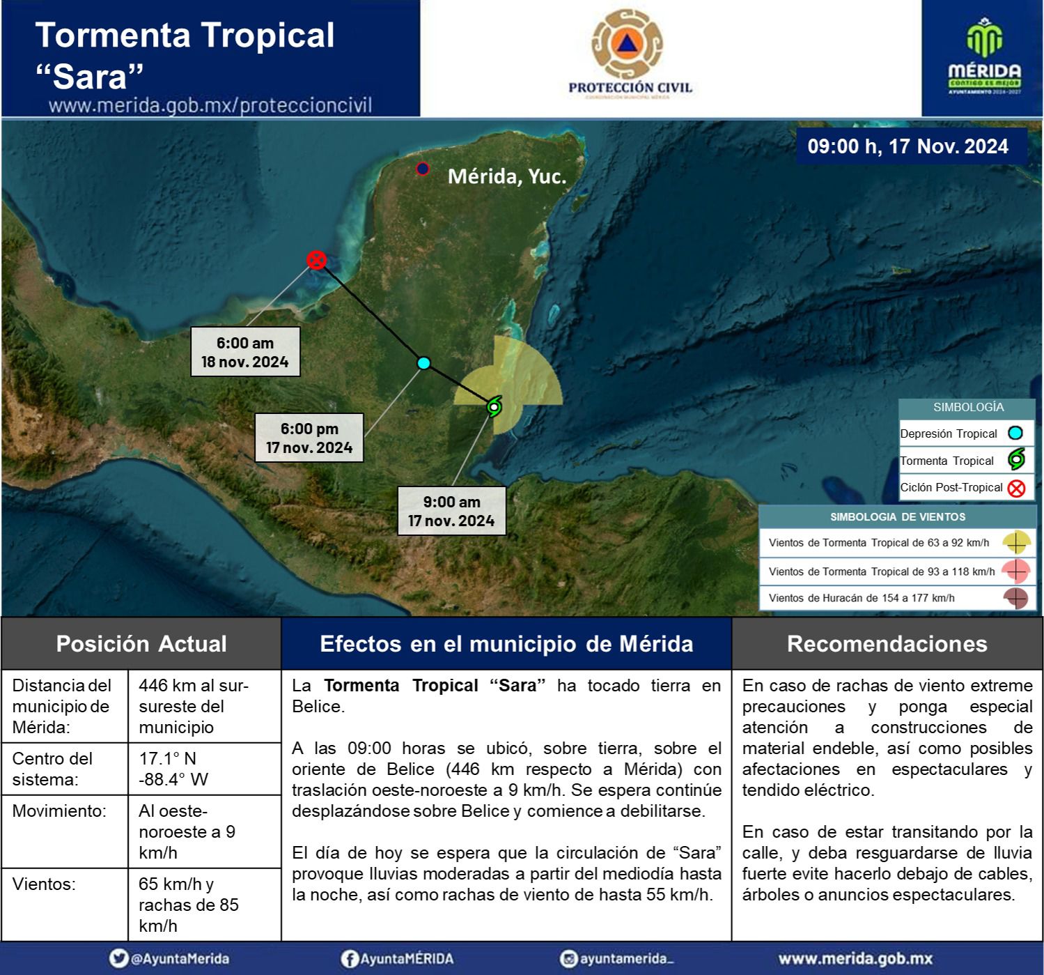 Publicado enYucatánLa Tormenta Tropical "Sara" toca tierra en Belice y afecta a Mérida por 24 Horas Yucatán noviembre 17, 2024noviembre 17, 2024