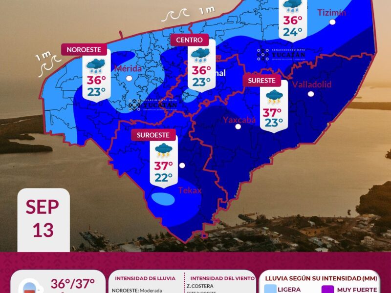 Publicado enYucatánPronóstico Yucatán: calor y chubascos por 24 Horas Yucatán septiembre 13, 2025septiembre 13, 2025