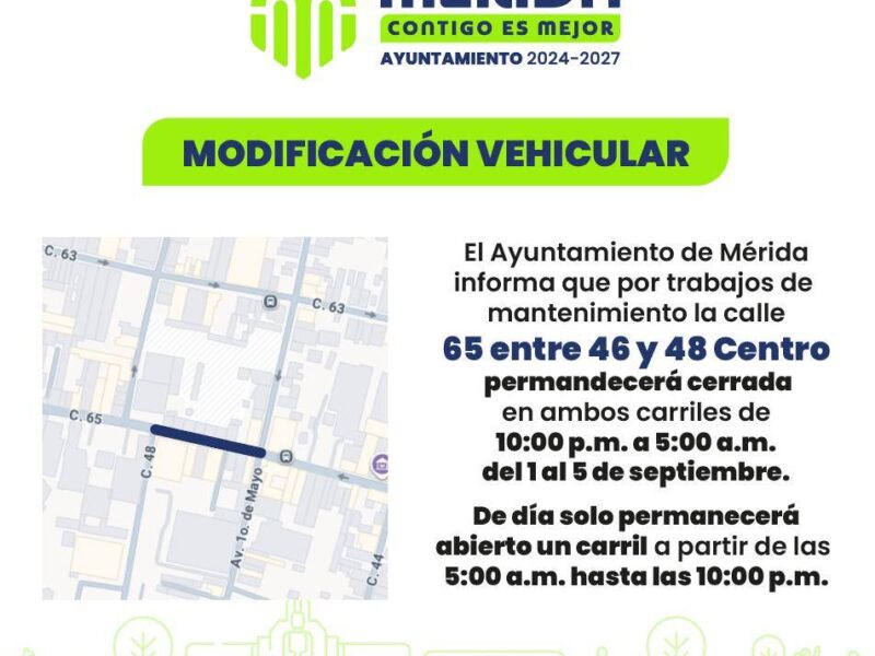 Publicado enMéridaAyuntamiento dará mantenimiento en la calle 65 del Centro por Aura Andrade septiembre 1, 2025septiembre 1, 2025