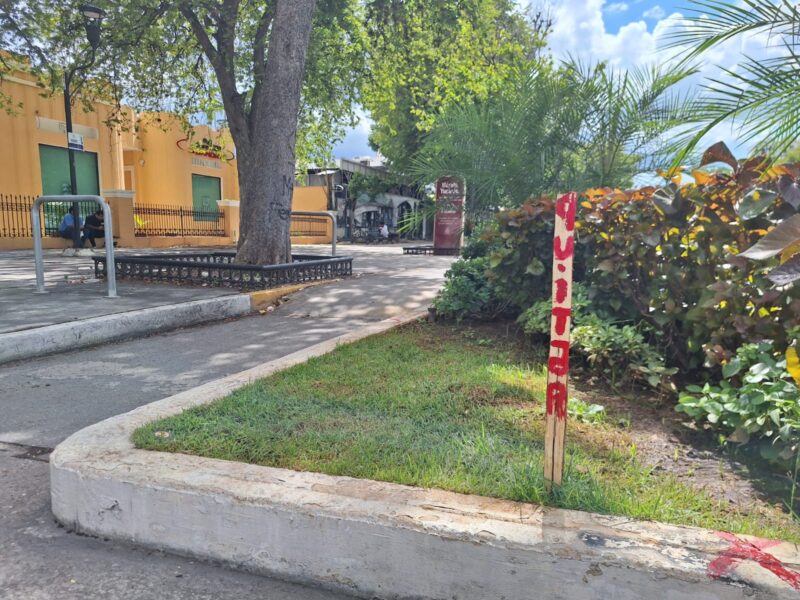 Aparecen letreros de ‘Quitar’ en islas peatonales de Paseo de Montejo