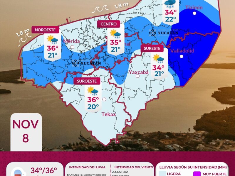 Pronóstico del clima: El ingreso de aire marítimo tropical y el establecimiento de una vaguada favorecerán este domingo 9 de noviembre: La presencia de lluvias moderadas y fuertes en varias zonas del estado, informó Protección Civil Yucatán. Las precipitaciones se presentarán después del mediodía en municipios del noreste y, a partir de las 14:00 horas, […]