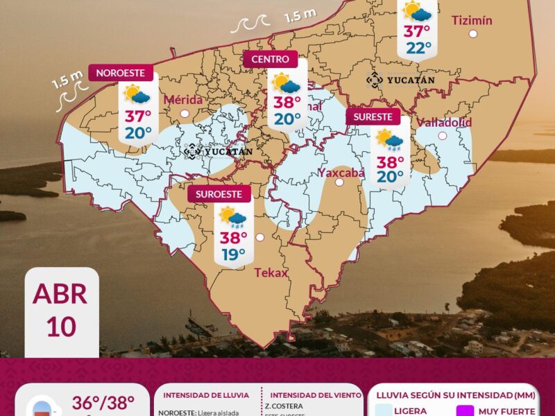 Suscríbete a nuestro canal Para este miércoles 8 de abril, el ingreso de aire marítimo procedente del Golfo de México favorecerá la presencia de lluvias ligeras y moderadas dispersas en la Península de Yucatán. El ambiente será caluroso durante el día y fresco por la noche, con condiciones típicas de la temporada. Temperaturas en Yucatán […]