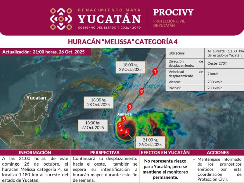 Publicado enYucatánAvanza Melissa: huracán categoría 4 sin riesgo para Yucatán por 24 Horas Yucatán octubre 26, 2025octubre 26, 2025