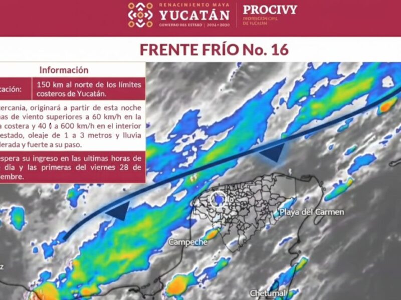 Publicado enYucatánFrente Frío 16: Procivy alerta por lluvias y vientos fuertes en Yucatán por 24 Horas Yucatán noviembre 27, 2025noviembre 27, 2025