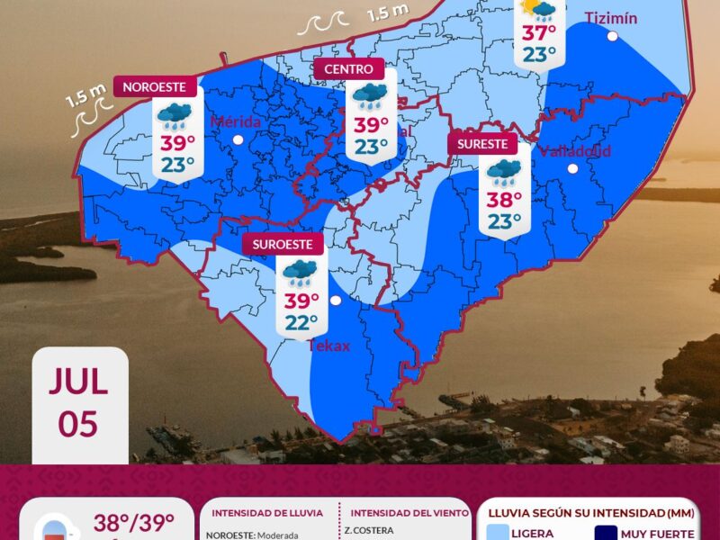 Publicado enYucatánPronóstico Yucatán: lluvias y actividad eléctrica por 24 Horas Yucatán julio 5, 2025julio 5, 2025