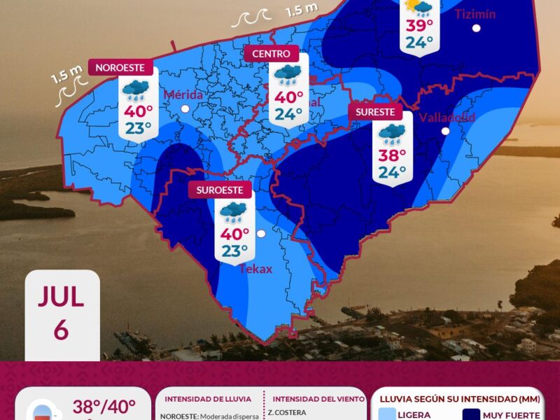 Publicado enYucatánPronóstico Yucatán: ambiente caluroso y lluvias por 24 Horas Yucatán julio 6, 2025julio 6, 2025