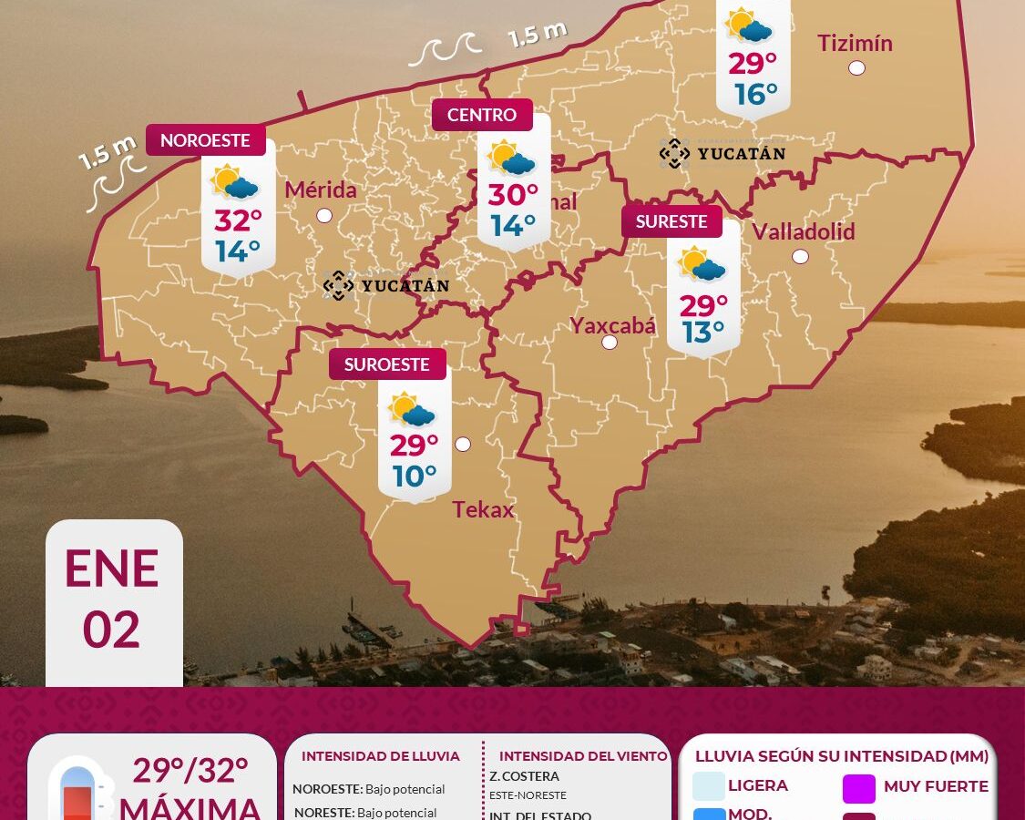 Para este viernes 2 de enero, la masa de aire ártico continuará favoreciendo con tiempo estable sobre el estado de Yucatán; así como ambiente cálido en el día y frío por la noche y el amanecer.