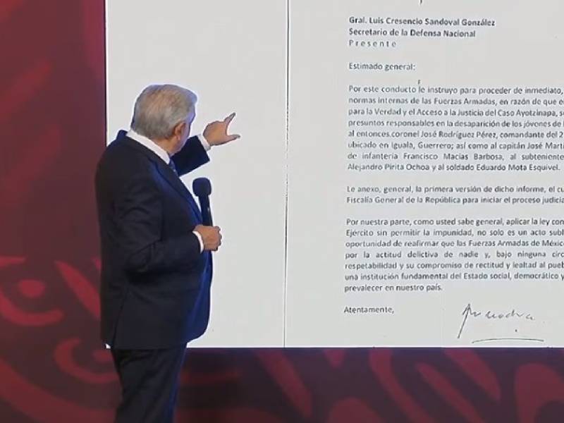Publicado enNacionalAMLO exhibe cartas a Sedena sobre órdenes de aprehensión de militares por caso Ayotzinapa por 24 HORAS septiembre 21, 2023