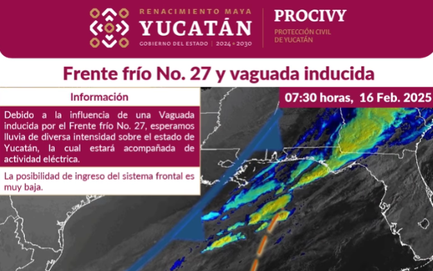 Publicado enYucatánClima en Yucatán: Lluvias y calor este domingo por el Frente Frío 27 por 24 Horas Yucatán febrero 16, 2025febrero 16, 2025