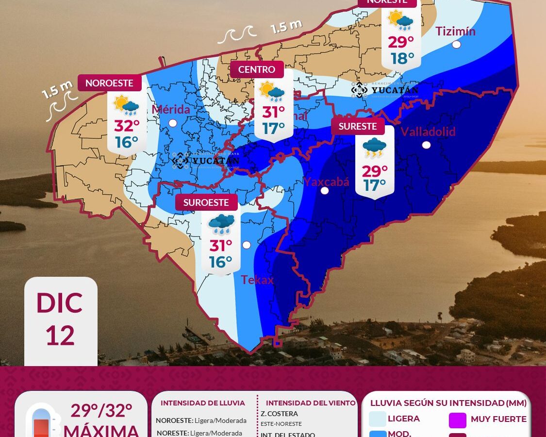 Para este viernes 12 de diciembre, la entrada de humedad proveniente del Mar Caribe y el establecimiento de una vaguada, mantendrán el ambiente cálido en la región con temperaturas máximas de 30 a 32 °C en municipios del centro y noroeste del estado, incluida la capital, y de 28 a 30°C, en el oriente y […]
