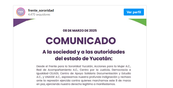 Publicado enYucatánColectivos feministas de Yucatán denuncian represión y exigen justicia tras el 8M por 24 Horas Yucatán marzo 9, 2025marzo 9, 2025