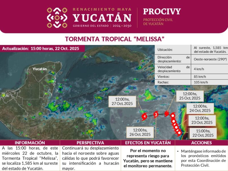 Publicado enYucatánTormenta Tropical Melissa bajo vigilancia, pero sin riesgo para Yucatán por 24 Horas Yucatán octubre 22, 2025octubre 22, 2025