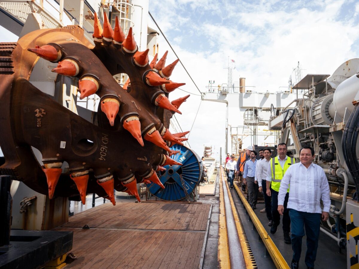 El Gobernador Joaquín Díaz Mena recorrió el buque de dragado Fernando Magallanes, embarcación que ejecutará los trabajos para ampliar y modernizar el Puerto de Progreso, considerado el proyecto más estratégico del Renacimiento Maya. Después de 25 años de intentos, el sueño de transformar la principal terminal marítima del estado se hace realidad. El navío, uno […]