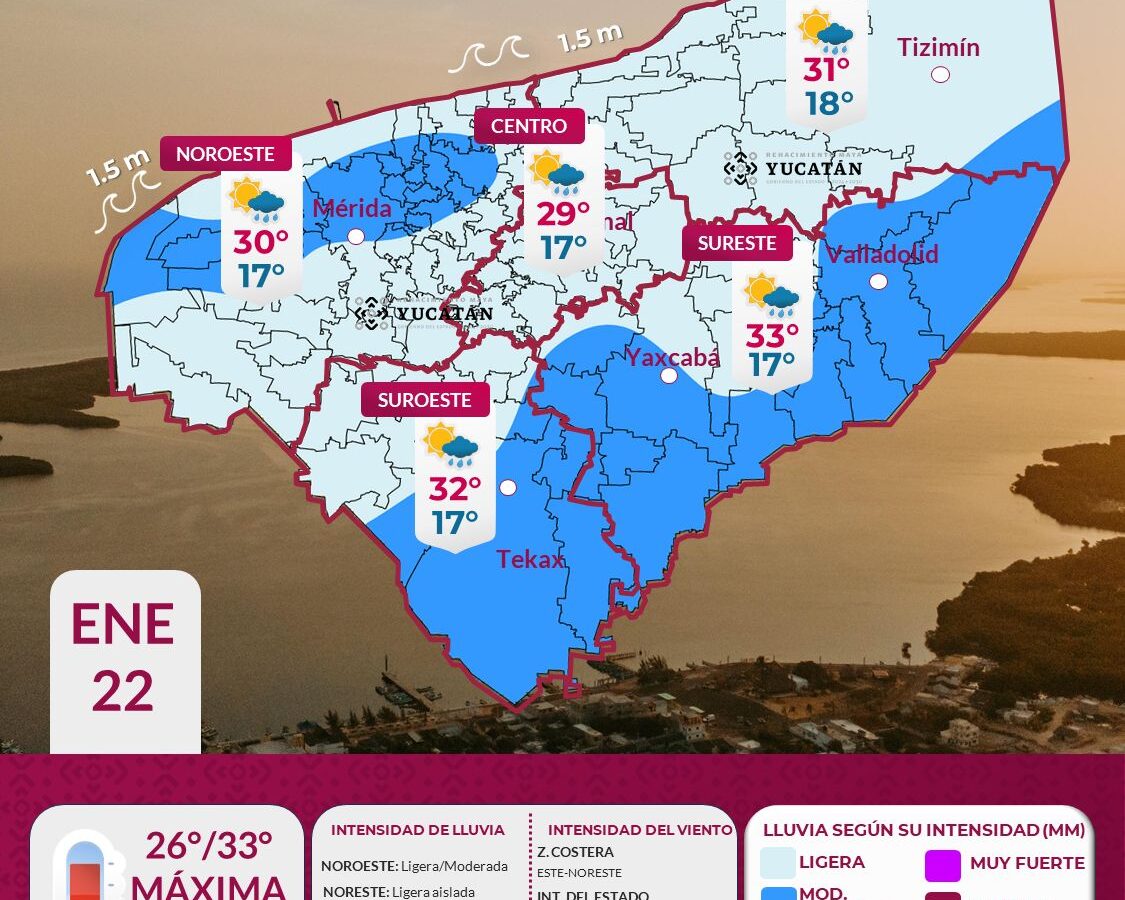 Para este jueves 22 de enero, el ingreso de humedad proveniente del Mar Caribe y el establecimiento de una vaguada, favorecerán la presencia de lluvia ligera a moderada de forma dispersa, la cual, se espera después del mediodía en los municipios del noroeste; y entre de las 15:00 y 18:00 horas, en municipios del noreste, […]