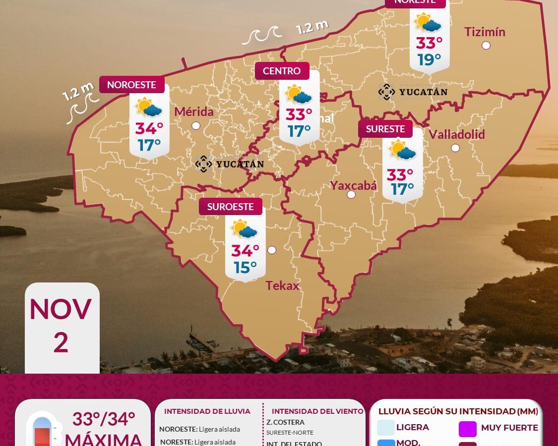 La Coordinación Estatal de Protección Civil (Procivy) informó que este domingo prevalecerá el ambiente cálido en Yucatán, con temperaturas máximas de entre 33 y 34 grados Celsius en el interior del estado y de 26 a 28 grados en la franja costera, previo al ingreso del Frente Frío No. 12 durante la noche. De acuerdo […]