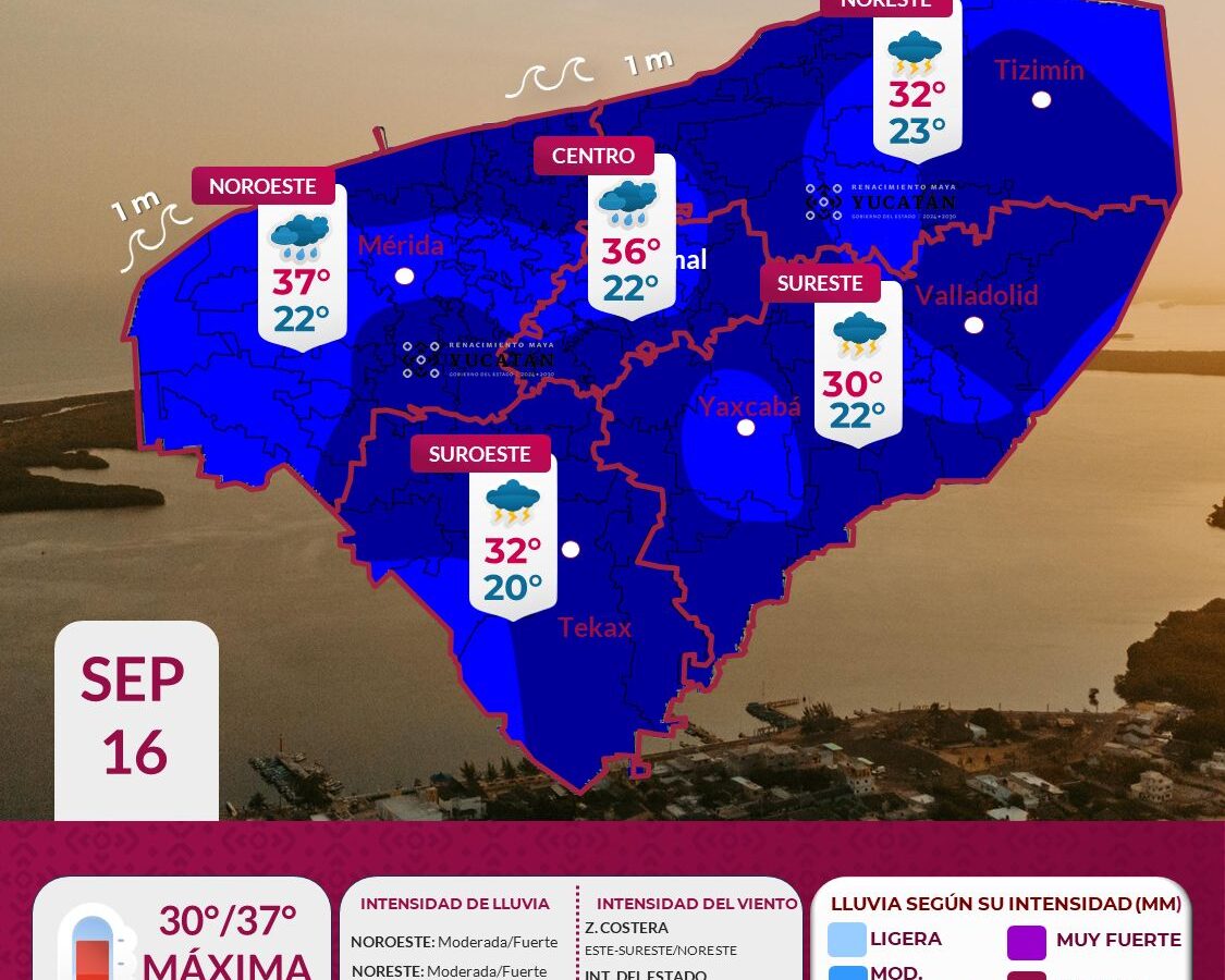 Para este martes 16 de septiembre, debido al ingreso de aire marítimo tropical procedente del Mar Caribe, la cercanía de una Onda Tropical, así como inestabilidad atmosférica superior, se espera lluvia moderada y fuerte acompañada de rachas de viento y actividad eléctrica entre las 9:00 horas y el mediodía en municipios del noreste y sureste […]