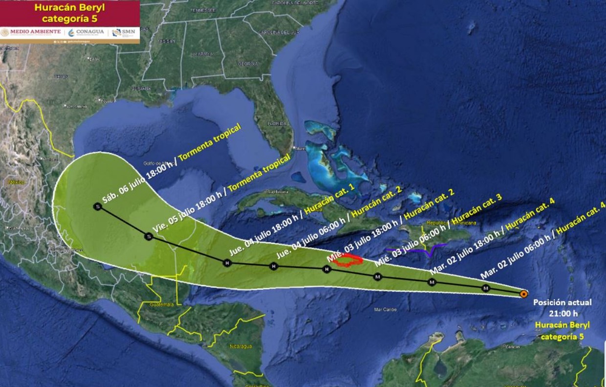 Publicado enYucatánHuracán Beryl alcanza categoría 5 y se dirige a la Península de Yucatán por 24 Horas Yucatán julio 1, 2024julio 1, 2024