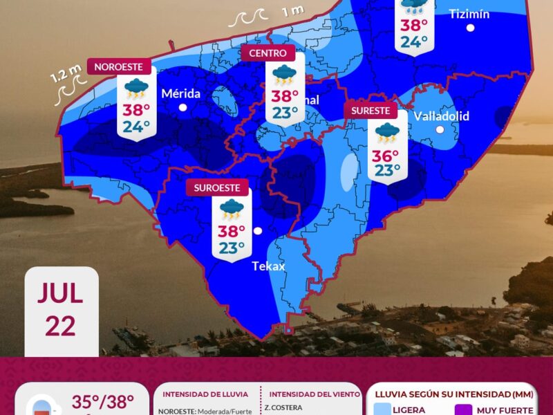 Publicado enYucatánLluvias moderadas y fuertes este martes 22 de julio en Yucatán por 24 Horas Yucatán julio 22, 2025julio 22, 2025